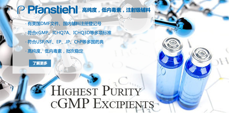 “熱烈祝賀Pfanstiehl的注射級甘氨酸Glycine(G-140)喜獲CDE登記號F20250000403, 這是Pfanstiehl產品獲得的第18個CDE登記號!”甘氨酸在醫藥輔料制劑中應用廣泛,, 可作為緩沖劑,增溶劑,穩定劑等,具有諸多優勢。Pfanstiehl秉承一貫高品質理念,為滿足全球生物制藥行業對于高品質甘氨酸的需求,隆重推出的注射級甘氨酸Glycine (G-140), 具有超高純度,超低內毒素,超低金屬殘留的特點,單獨檢測29種金屬離子,并且新增DNA,RNA,DNA酶,RNA酶和脂肪酶,亞硝酸鹽等多項質量指標的檢測,符合多國藥典規定(USP, EP, BP, JPE, ChP),可用于生物治療性藥物和疫苗的生產。產品信息:· 產品名稱:Glycine, High Purity, Low Endotoxin, Low Metals, USP, EP, BP, JPE, ChP (G-140)· 中文名稱:甘氨酸· 分子式:C2H5NO2· 分子量:75.07 g / mol· CAS號:56-40-6· 產品貨號:G-140產品特點: · 超高純度,超低內毒素,超低微生物含量,超低金屬雜質殘留· 質量指標新增DNA,RNA,DNA酶,RNA酶,脂肪酶和亞硝酸鹽檢測· 符合多國藥典:USP, EP, BP, JPE, ChP· 符合ICH Q3D標準· 符合GMP標準· 已獲DMF和CDE登記號 產品應用:· 緩沖劑· 穩定劑· 增溶劑如果您對Pfanstiehl注射級別Glycine G-140感興趣,歡迎聯系Pfanstiehl 中國區代理商北京西美杰科技有限公司獲得如下詳細的產品概況說明文件和測試樣品。Pfanstiehl Inc.最新產品系列如下,歡迎聯系北京西美杰科技有限公司獲取100g裝免費樣品。北京西美杰科技有限公司為Pfanstiehl中國代理,為客戶提供完善的技術支持與售后服務。歡迎撥打西美杰客服電話400-050-4006或者登陸網站www_xmjsci_com.bosonview.com了解更多信息。 更多>西美杰介紹
